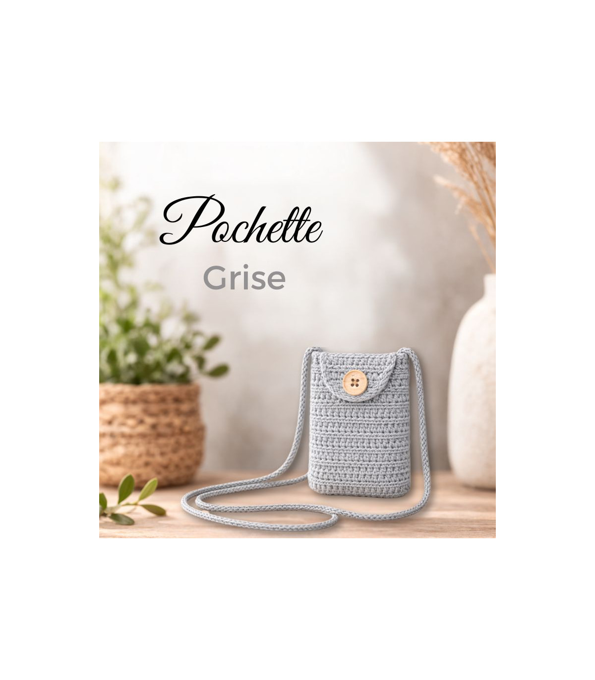 La pochette en crochet conçue par l'une de nos créatrices est en coton, matière douce et agréable, avec cordon.